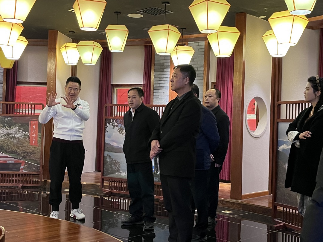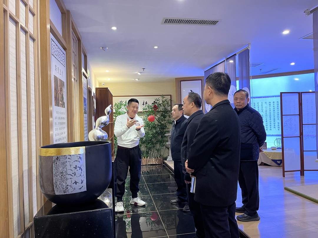 集团董事长亲自陪同参观天下第 一壶中华茶道馆,并详细汇报了“老村长贵品出山直播大舞台项目”、“天壶象山茶旅一体化乡村振兴项目”以及“天壶大平台改扩建项目”的相关情况。