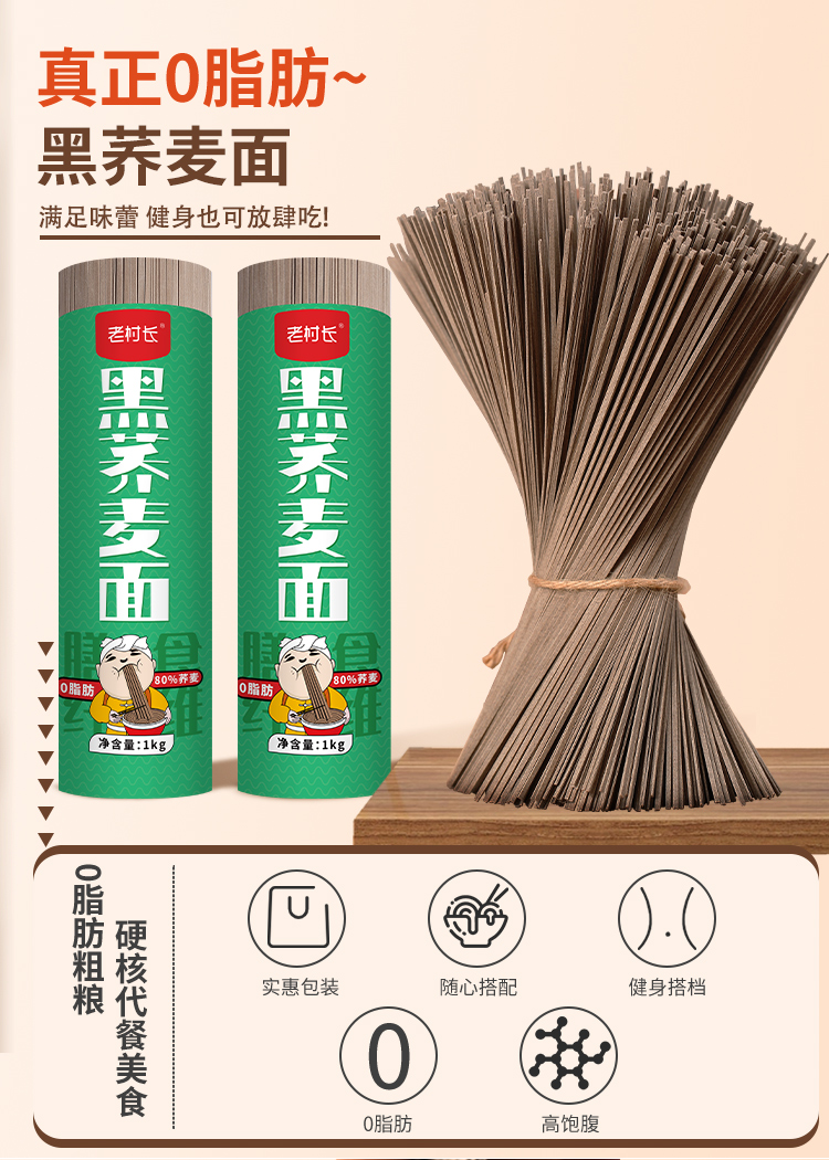 老村长黑荞麦面0脂粗粮健康面上市